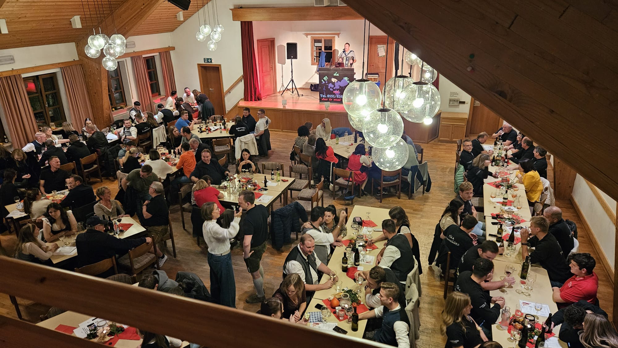 Der Saal war mehr als gut gefüllt und wir mussten noch ein paar Tische dazwischen quetschen.