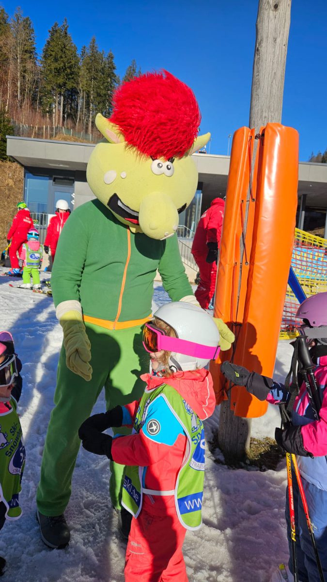 Der Schneemangel und der dadurch über den Haufen geworfene Plan für unsere Skikurse hatten auch eine positive Seite. Da in Mitterdorf höchstens Grasskifahren möglich gewesen wäre, wichen wir dieses Mal mit unseren Zwergerln nach Hochficht aus. Im Kidspark beim Fichtl war noch ausreichend Schnee vorhanden, um mit den Kleinsten die ersten Schritte bzw. Kurven im Schnee zu üben.